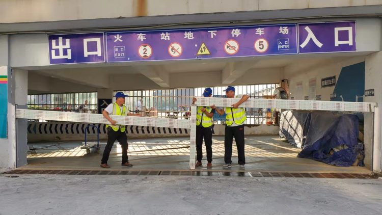 最后,在火車站地下停車場開展了防汛應急演練,組織停車場工作人員快速安裝和拆卸阻水板,確保在暴雨期間能夠順利開展防汛工作。
