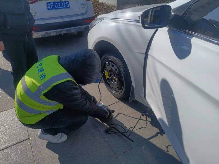 近日,市人民醫(yī)院停車(chē)場(chǎng)班組在日常維持場(chǎng)內(nèi)交通中發(fā)現(xiàn)一輛即將駛出停車(chē)場(chǎng)的白色轎車(chē)左前輪胎爆胎,嚴(yán)重影響行車(chē)安全,隨即引導(dǎo)車(chē)輛靠邊停車(chē),詢(xún)問(wèn)后得知這一對(duì)駕車(chē)來(lái)醫(yī)院探望病人的年輕夫妻竟對(duì)爆胎的事情全然不知,駕駛員小伙子是新手也不知道如何更換備胎。班長(zhǎng)吳懷松同志當(dāng)機(jī)立斷,從黨員愛(ài)心服務(wù)站中拿出千斤頂和充氣泵,指揮人員以最快的速度更換了備胎、補(bǔ)足了胎壓,并叮囑他們到最近的維修點(diǎn)補(bǔ)胎或更換新輪胎,保證行車(chē)和人身安全。