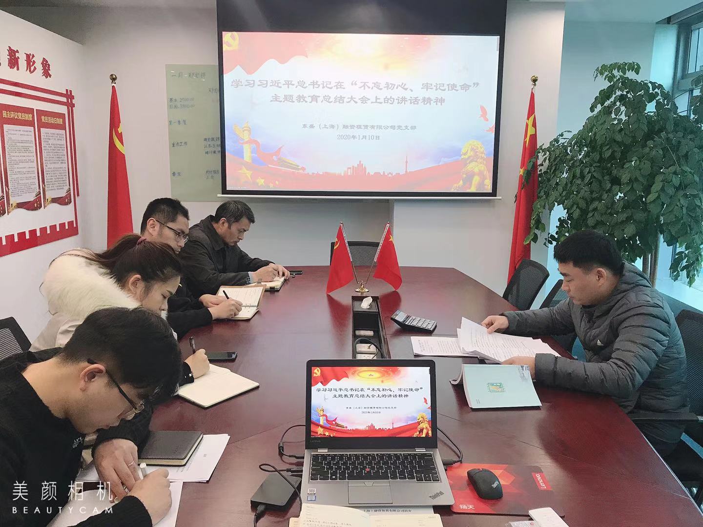 1月10日下午,東盛黨支部在黨員活動(dòng)室開展了以“不忘初心、牢記使命”為主題的集中學(xué)習(xí)會(huì)議。會(huì)議傳達(dá)學(xué)習(xí)了習(xí)近平總書記在“不忘初心、牢記使命”主題教育總結(jié)大會(huì)上的重要講話精神并細(xì)細(xì)品味了習(xí)近平總書記在主題教育總結(jié)大會(huì)上的講話金句。在集中學(xué)習(xí)重要講話精神后,東盛支部觀看了主題教育總結(jié)大會(huì)視頻。