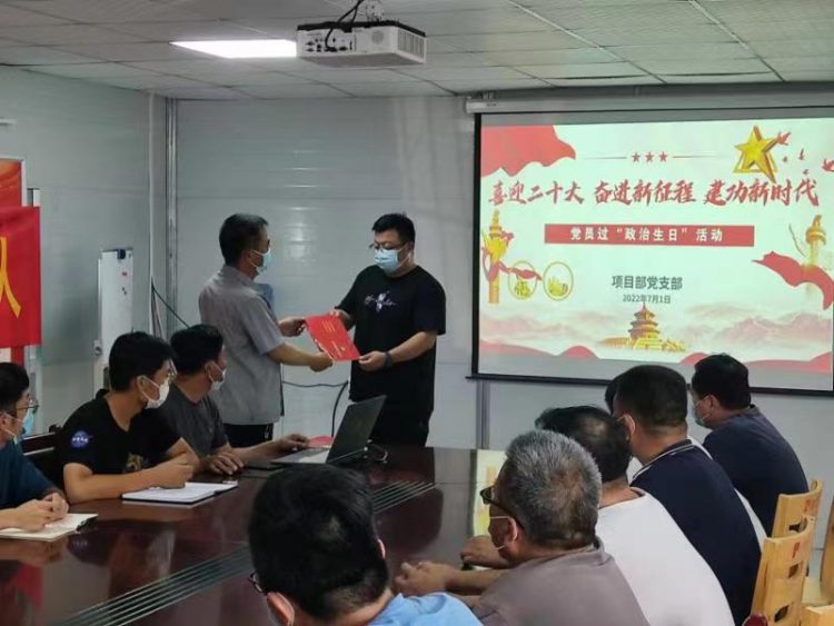為慶祝中國(guó)共產(chǎn)黨成立101周年,喜迎黨的二十大,引導(dǎo)黨員干部進(jìn)一步堅(jiān)定理想信念、牢記初心使命,7月1日上午,淮海建工公司項(xiàng)目部黨支部開(kāi)展“為黨旗添彩,為黨徽增光”主題黨日暨黨員過(guò)政治生日活動(dòng)。