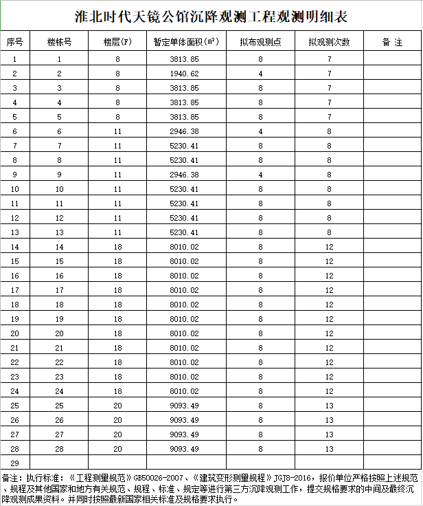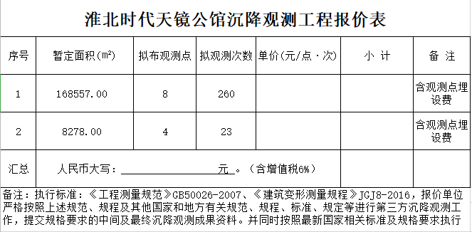 4.7時(shí)代天境公館沉降觀測(cè)工程報(bào)價(jià)表(附件四)