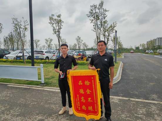 2023年6月17日晚上8點(diǎn),南湖公園公司中湖項(xiàng)目部保安趙新代在金沙戲水沙灘巡查當(dāng)中撿到價(jià)值九千多塊的蘋(píng)果手機(jī)一部,第一時(shí)間將情況匯報(bào)至公司物業(yè)群里,并積極主動(dòng)嘗試聯(lián)系失主。通過(guò)多方打聽(tīng)當(dāng)晚終于物歸原主,失主找回手機(jī)后十分激動(dòng),為了表示感謝,失主第二天送來(lái)錦旗一面。