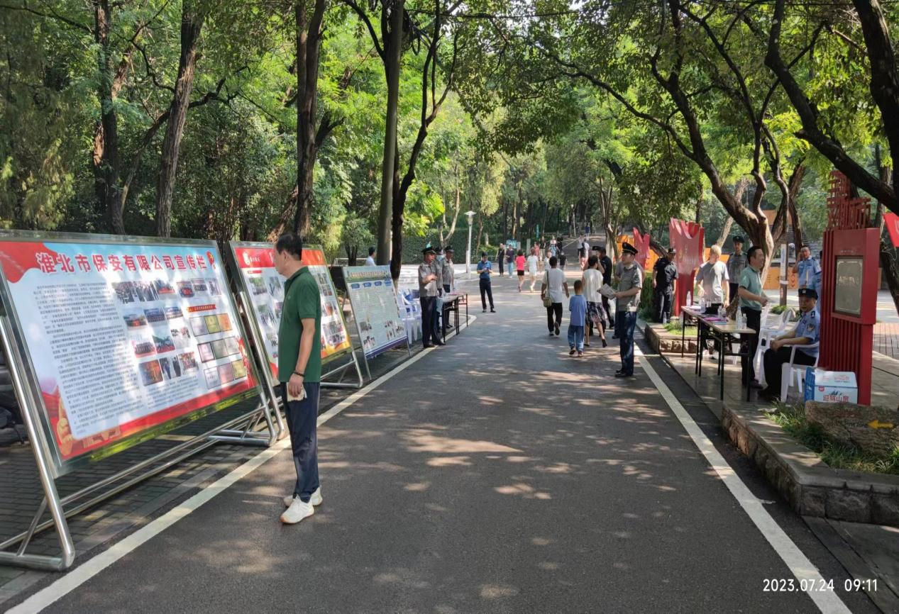 7月24日上午,為廣泛宣傳保安行業(yè)在維護(hù)社會和諧穩(wěn)定、保障人民安居樂業(yè)、促進(jìn)經(jīng)濟(jì)社會發(fā)展等方面取得的成效。淮北市保安監(jiān)管支隊、淮北市保安有限公司在相山公園組織開展以“保安心向黨、護(hù)航新征程”為主題的保安行業(yè)宣傳活動。市保安監(jiān)管支隊支隊長孫兆良、政委曹輝、公司總經(jīng)理吳信威、押運人防隊員等13人參加了宣傳活動。