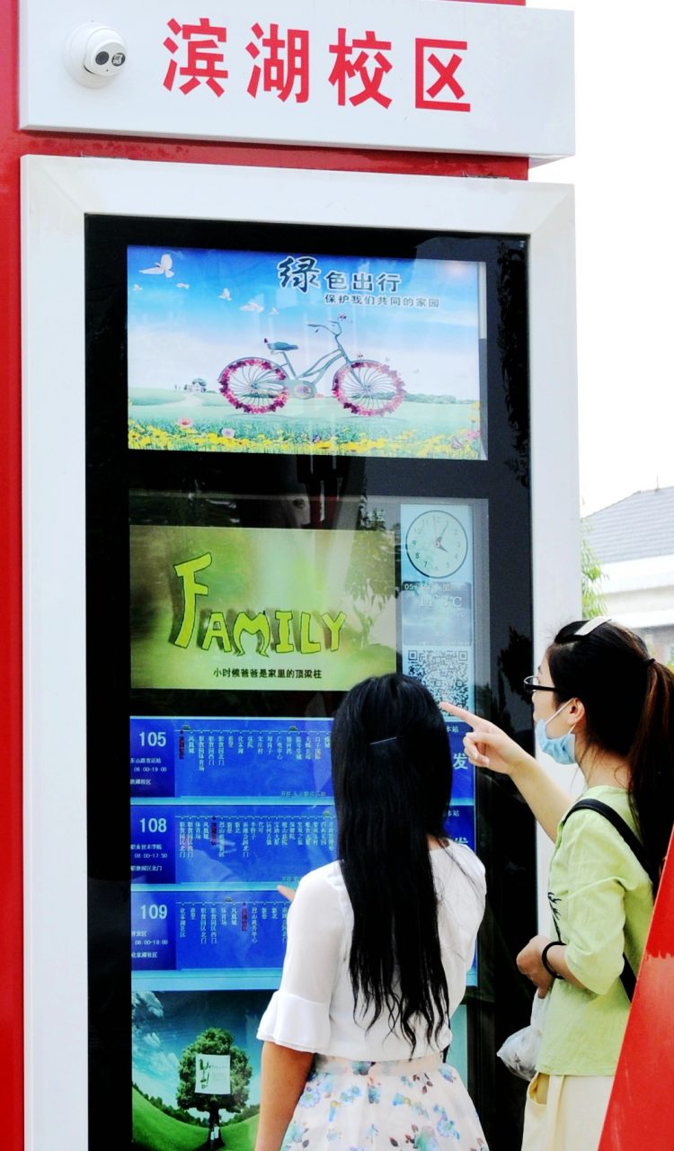 電子公交站牌還沒(méi)裝好,就引來(lái)了不少大學(xué)生的圍觀。電子站牌采用戶外高亮55寸LCD屏,由號(hào)位、視頻、LED屏、公交線路四部分組成,分屏顯示公交車(chē)到站信息、視頻廣告、公益宣傳、二維碼掃描、時(shí)鐘信息、微信平臺(tái)等多種信息,減少市民候車(chē)的枯燥,視頻右側(cè)增加了蘋(píng)果版和安卓版的“淮北汽運(yùn)”微信公眾號(hào)二維碼,視頻下方,則滾動(dòng)顯示公交線路的站點(diǎn)、運(yùn)行時(shí)間等詳細(xì)信息,電子站牌最下端還可以實(shí)時(shí)更新當(dāng)天的天氣預(yù)報(bào)。同時(shí)結(jié)合站牌背面滾動(dòng)系統(tǒng)可以增加宣傳力度,系統(tǒng)刷新5秒一次,一目了然地看到公交車(chē)輛運(yùn)行的信息,途經(jīng)該站點(diǎn)由哪幾路公交線路,有幾臺(tái)車(chē)在各線路上運(yùn)行,各線路那臺(tái)車(chē)離該站臺(tái)近,結(jié)合微信公交讓廣大市民可以做到掐點(diǎn)等車(chē)、守時(shí)候車(chē)。
