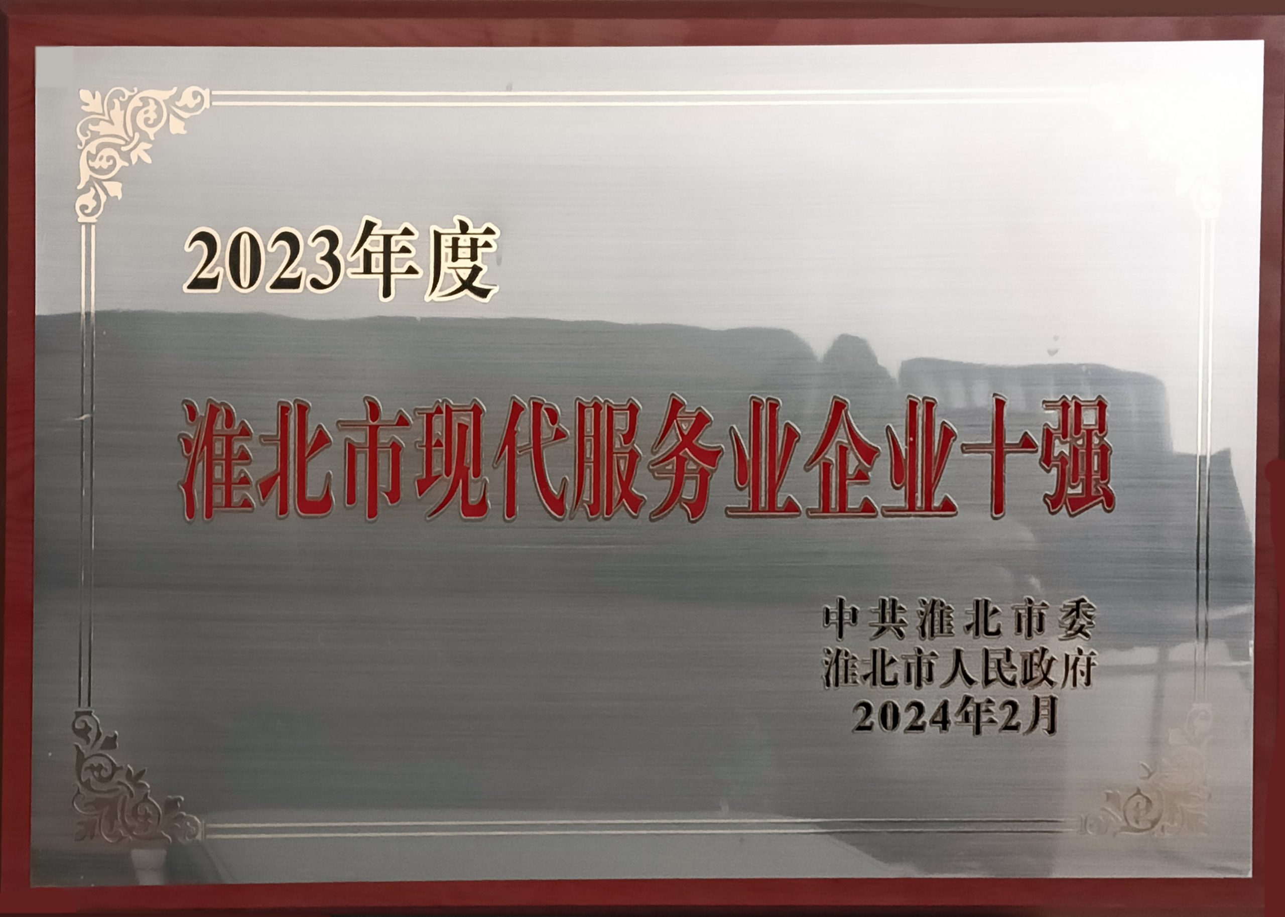 淮北市建投商貿(mào)有限公司再次榮獲全市“現(xiàn)代服務(wù)業(yè)企業(yè)十強”榮譽稱號