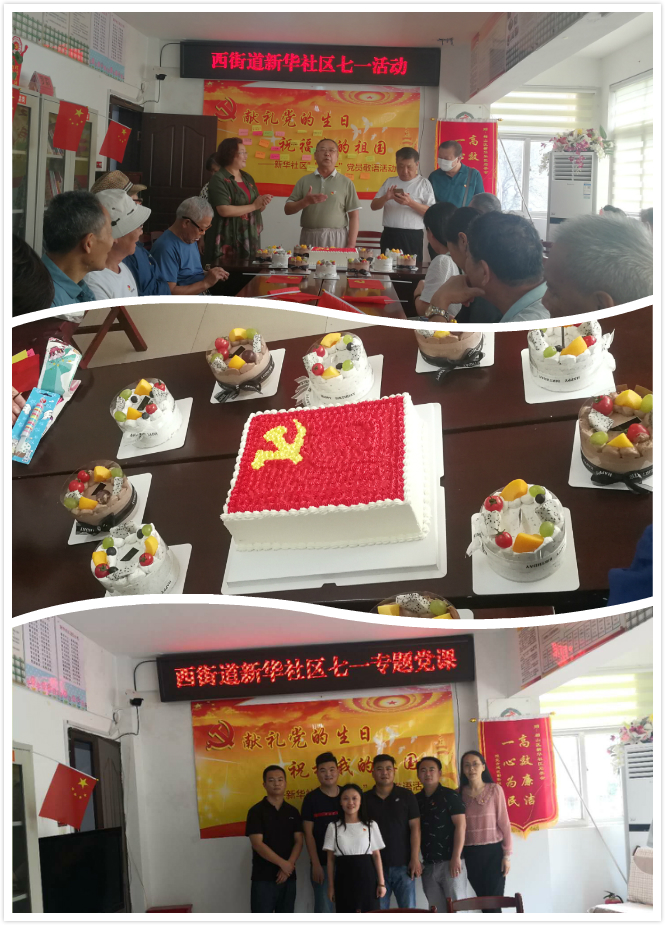商貿(mào)公司黨支部黨員與新華社區(qū)共建開展以“獻(xiàn)禮黨的生日,祝福我的祖國”為主題的慶七一主題活動,黨員親筆書寫對黨和祖國的祝福,社區(qū)老黨員帶領(lǐng)全體黨員齊聲高唱《永遠(yuǎn)跟黨走》,在熱烈的歌聲中大家切蛋糕,共同慶賀黨的99歲生日,大家邊吃著蛋糕,邊說著今天的幸福生活。