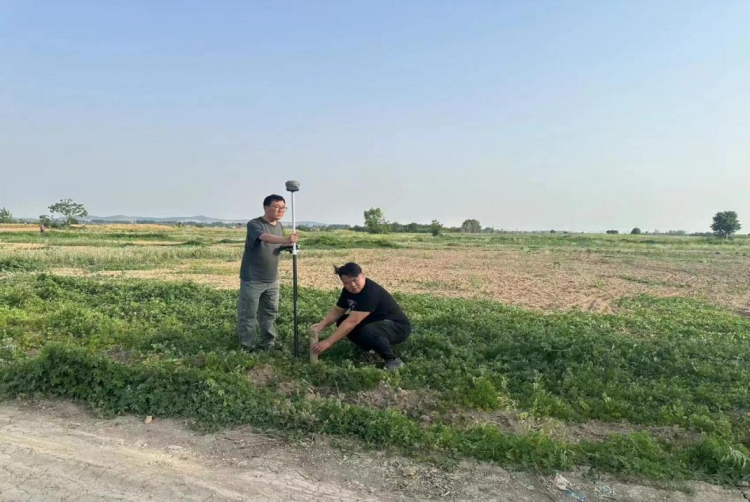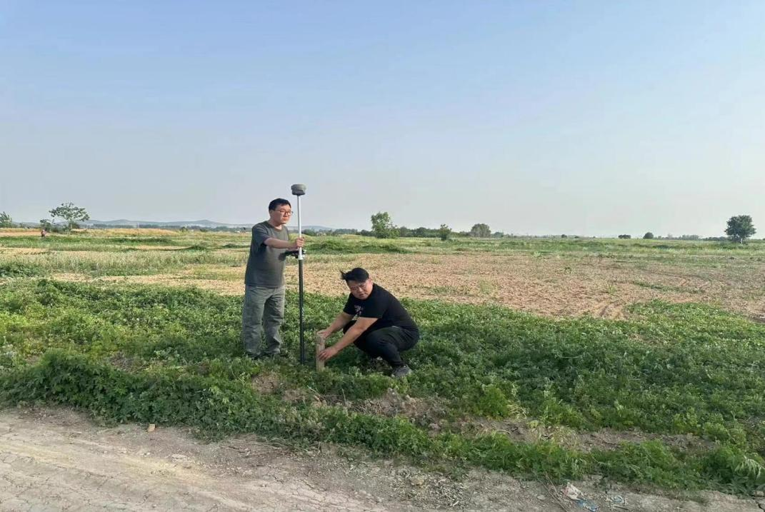 工程部左永宏、張勇等人認(rèn)真核對地塊信息、指認(rèn)土地邊界,使用GPS測繪儀等儀器圍繞地塊邊界丈量土地整體面積,記錄及整理相關(guān)數(shù)據(jù)……一系列環(huán)節(jié)有條不紊地進(jìn)行,有效保證了測量數(shù)據(jù)的真實(shí)性和準(zhǔn)確性。