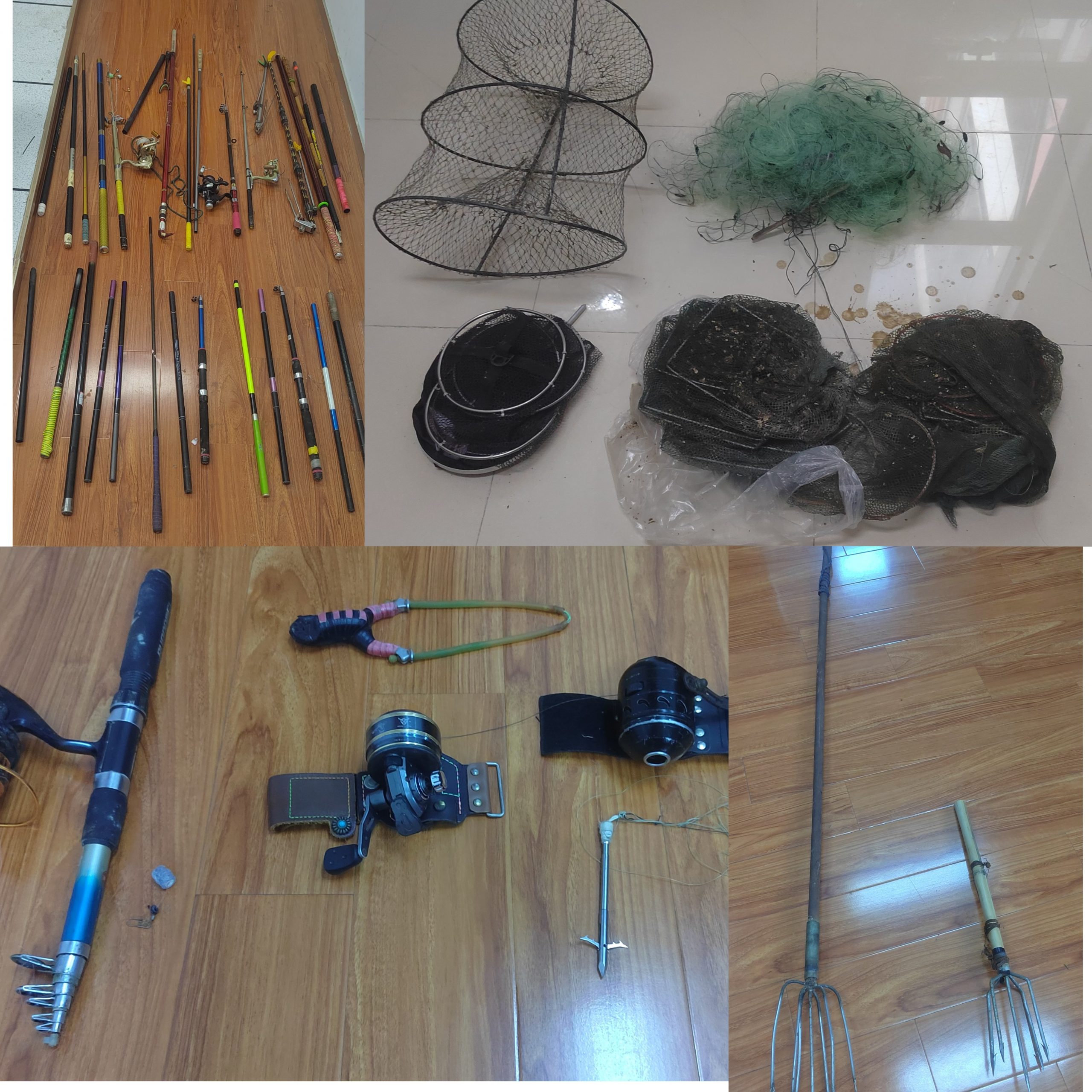 行動(dòng)中,工作人員發(fā)現(xiàn)并沒收了偷釣者使用的魚竿共計(jì)70余把,彈弓射魚器10余把,甲魚捕捉器20余個(gè),撒網(wǎng)2個(gè),魚叉2個(gè),這些魚竿不僅破壞了水生生物的生存環(huán)境,也嚴(yán)重威脅到游客的自身安全。同時(shí)清理了藏匿于水下的地籠20余個(gè),捕漁網(wǎng)300余米,這些非法捕魚工具嚴(yán)重破壞了水生態(tài)系統(tǒng)的平衡,是此次清理的重點(diǎn)對(duì)象。工作人員還勸離野游人員約570人次,通過現(xiàn)場(chǎng)講解、發(fā)放宣傳資料等方式,向他們普及了水域安全知識(shí)及保護(hù)生態(tài)環(huán)境的重要性。設(shè)立“珍愛生命,遠(yuǎn)離危險(xiǎn)水域;保護(hù)環(huán)境,從我做起”等溫馨提醒標(biāo)示牌,讓安全意識(shí)深入人心,得到大家的積極響應(yīng)和支持。