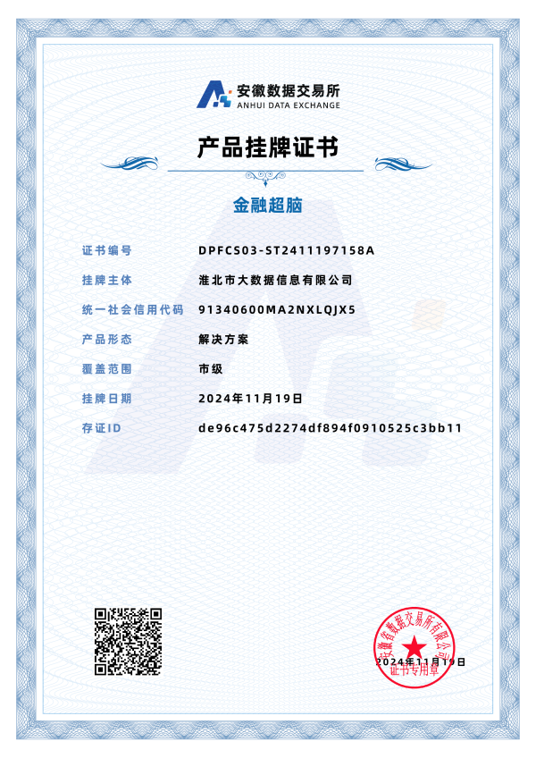 數(shù)據產品掛牌上市正式開啟數(shù)據交易之旅,持續(xù)擴大“金融超腦”產品的影響力,促進我市普惠金融業(yè)務均衡發(fā)展,推動大眾創(chuàng)業(yè)、萬眾創(chuàng)新,助推經濟發(fā)展方式轉型升級。同時,憑借在金融超腦平臺上的普惠金融助貸數(shù)據集,淮北市大數(shù)據信息有限公司順利申請到數(shù)據知識產權,進一步彰顯了公司在數(shù)據資源開發(fā)利用與合規(guī)管理方面的卓越能力與前瞻性布局。