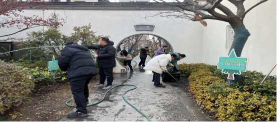 盡管天氣寒冷,但大家的熱情絲毫未減。經(jīng)過一下午的努力,桃花源景觀展示區(qū)面貌煥然一新,呈現(xiàn)出更加整潔、美麗的面貌。