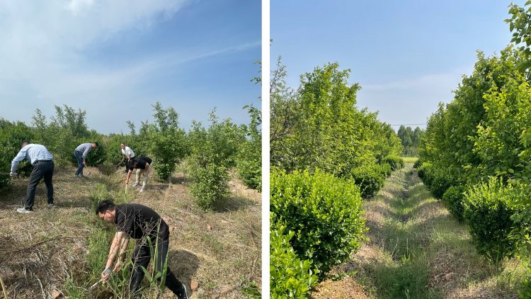 活動現(xiàn)場,黨支部書記李振昊帶領全體黨員對綠金湖苗圃基地苗木開展日常養(yǎng)護工作。全體黨員干部分工協(xié)作、默契配合,有序完成除草除雜、修剪、澆灌等工作,使苗圃環(huán)境煥發(fā)新貌,以實際行動詮釋黨員“勇于吃苦、樂于奉獻”的精神品質(zhì)。