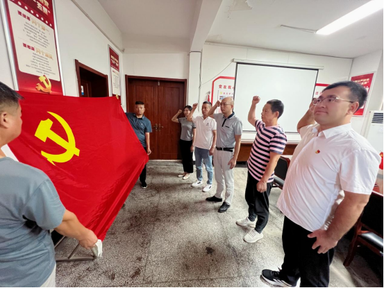 活動開始,全體人員集中觀看紀(jì)念中國人民抗日戰(zhàn)爭暨世界反法西斯戰(zhàn)爭勝利80周年大會。觀看過程中,大家保持安靜肅穆,認(rèn)真感受閱兵儀式所展現(xiàn)出的國家強(qiáng)大軍事力量和軍人昂揚(yáng)風(fēng)貌,深刻體會到其背后蘊(yùn)含的深厚愛國情懷與民族精神。整齊劃一的受閱方陣、先進(jìn)精良的武器裝備,讓全體黨員心靈受到極大震撼,自豪感油然而生。閱兵儀式結(jié)束后,全體黨員面向鮮紅的黨旗,莊嚴(yán)地重溫入黨誓詞。“我志愿加入中國共產(chǎn)黨,擁護(hù)黨的綱領(lǐng)……” 鏗鏘有力的誓言在會議室久久回蕩,字字千鈞,叩擊著每位黨員的心靈。這不僅是對初心使命的回溯,更是一次精神的淬煉與升華。