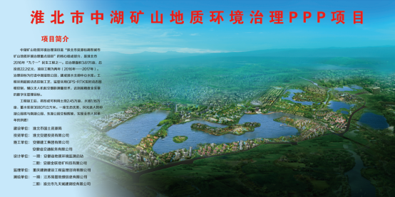 中湖治理采用PPP融資模式,由安徽建工集團與淮北市建投控股集團有限公司合作建設(shè)。采用工程治理和生態(tài)修復等措施,對采煤沉陷區(qū)實施適度超前式治理,被國家財政部、國土資源部等部委列為國家第三批PPP示范工程,在全國礦山地質(zhì)環(huán)境治理工作中具有引導示范效應。