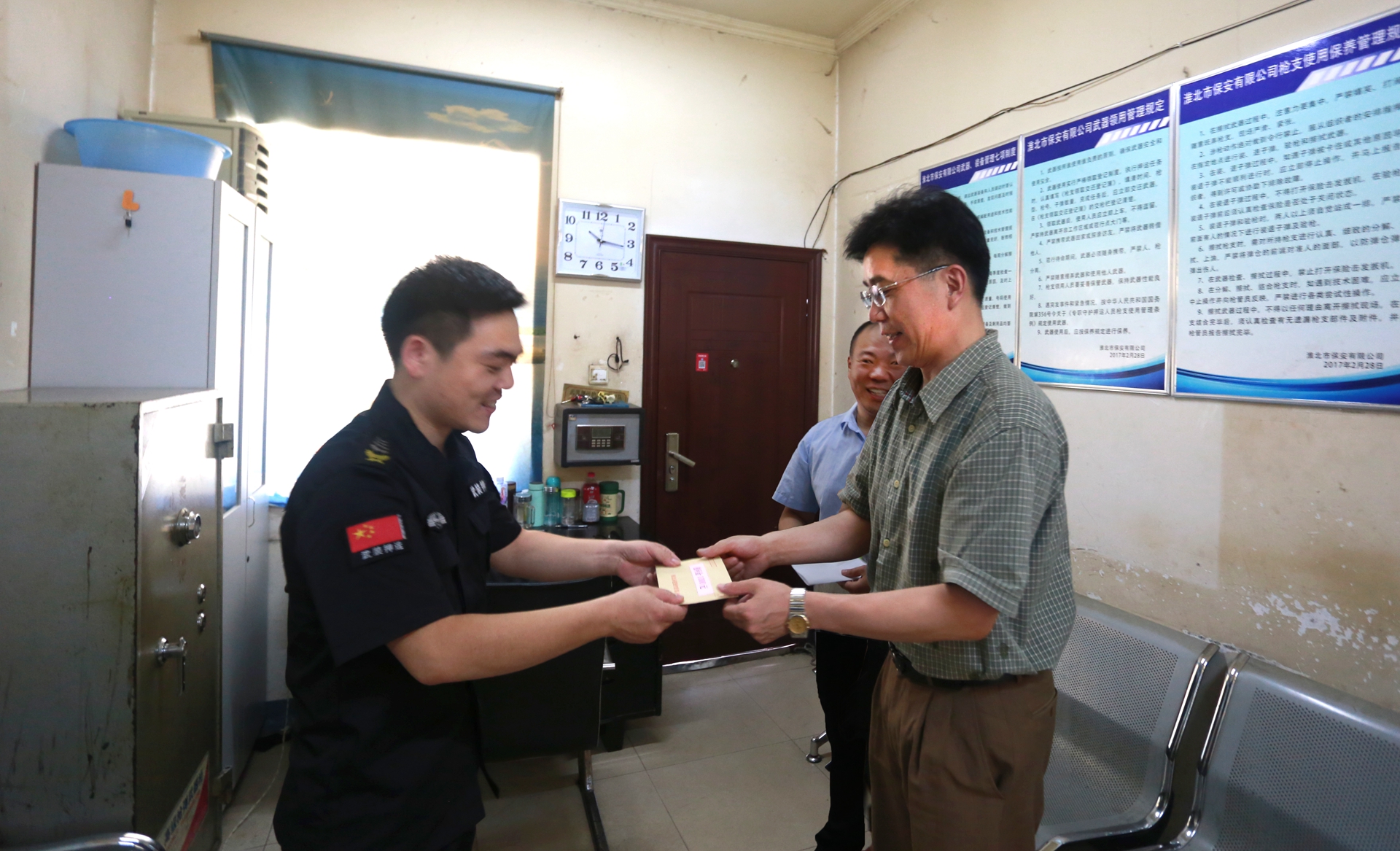 為了讓貧困黨員感受到集團公司大家庭的關懷和溫暖,7月13日上午,集團公司黨委委員、紀委書記王獻忠和法律部副部長余永明來到保安公司押運一中隊,為貧困黨員送去慰問金和祝福。
