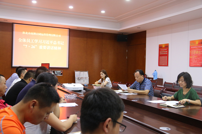 8月22日,南湖公園運(yùn)營(yíng)管理有限公司通過(guò)會(huì)議集中學(xué)習(xí)的形式,向全公司人員傳達(dá)了習(xí)近平總書(shū)記“7·26”重要講話精神。