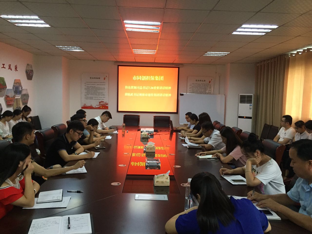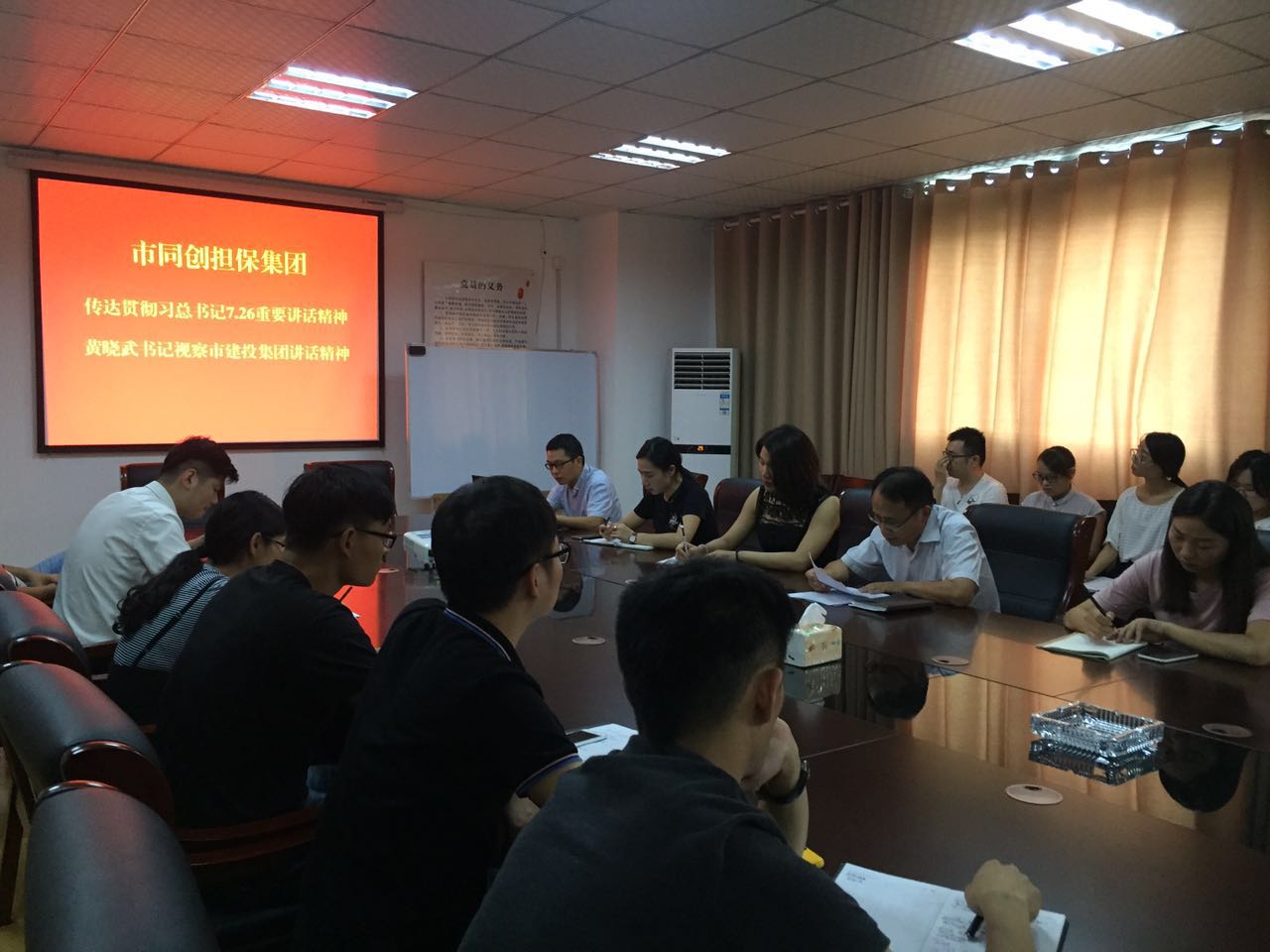 8月22日,市同創(chuàng)融資擔保集團組織全體員工學習貫徹習總書記7.26重要講話精神與市委書記黃曉武同志調研市建投集團講話精神。