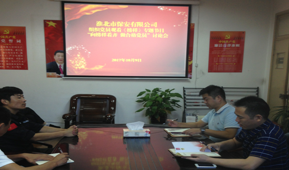 10月9日,保安公司黨支部在公司二樓會議室組織黨員集中收看《榜樣》專題片,觀看后就如何“向榜樣看齊,做合格黨員”進(jìn)行了討論,黨員們結(jié)合自身崗位實際,積極發(fā)言,談體會、談感受,找到了自己學(xué)習(xí)的榜樣。