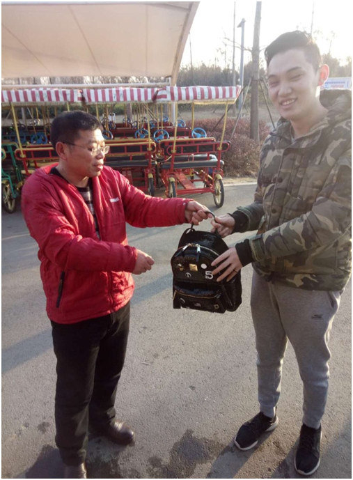 12月21日下午3點(diǎn)半,一位來自河南的游客在乘坐南湖景區(qū)觀光車游覽時(shí),不慎將隨身攜帶的背包遺忘,被南湖景區(qū)電瓶車班長朱德標(biāo)及時(shí)發(fā)現(xiàn),并通過身份證上的信息物歸原主。失主對(duì)朱德標(biāo)這種拾金不昧精神和急游客所急的服務(wù)態(tài)度感到萬分感謝,激動(dòng)地說:“非常感謝,要是沒有錢包和證件我此后的行程會(huì)有很大影響,南湖人真是好!”。