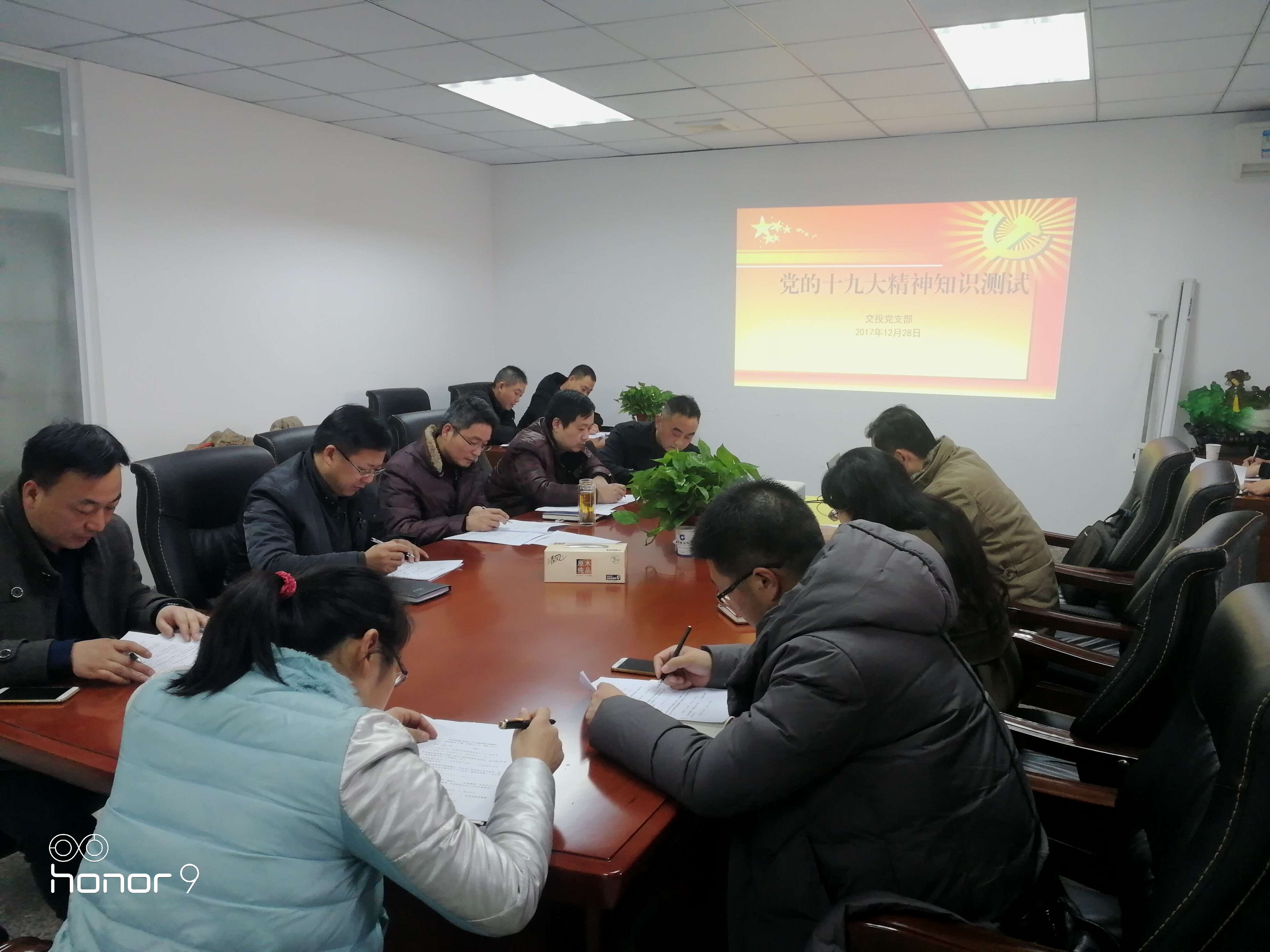 為深入學(xué)習(xí)貫徹黨的十九大精神,進(jìn)一步強(qiáng)化交投公司黨員干部對十九大精神實(shí)質(zhì)和核心要義的理解,真正做到“學(xué)懂弄通做實(shí)”,12月28日下午,交投黨支部組織支部全體黨員開展“十九大”知識測試。