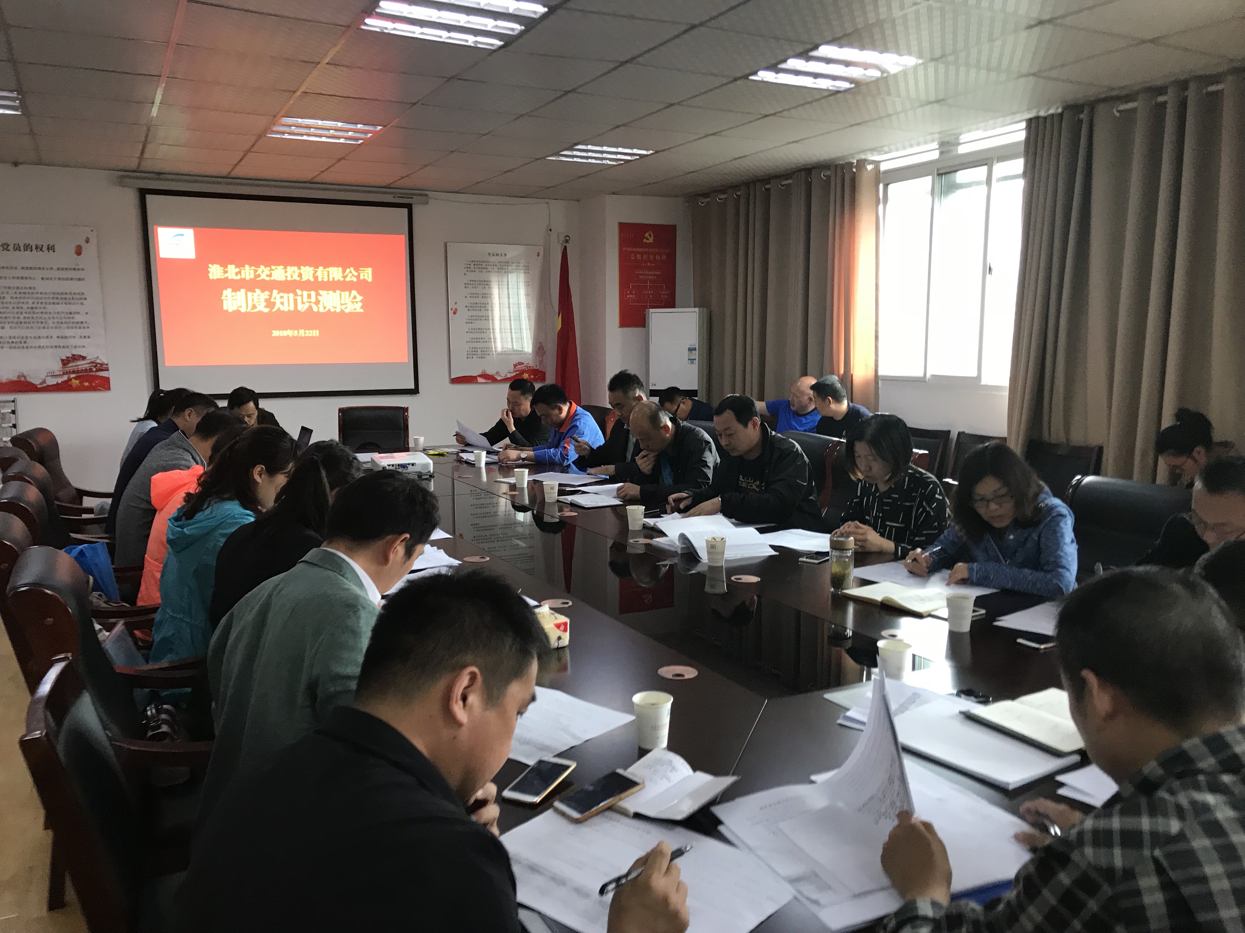 2018年5月22日上午交投公司組織開展了集團(tuán)公司部分制度培訓(xùn)及考核活動。此次培訓(xùn)旨在進(jìn)一步增強(qiáng)交投公司下屬各子公司領(lǐng)導(dǎo)班子人員規(guī)矩紀(jì)律意識,強(qiáng)化集團(tuán)公司規(guī)章制度的約束力和執(zhí)行力,使公司管理規(guī)范化、經(jīng)營專業(yè)化。