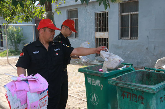 在海宮社區(qū)內,黨員志愿者們參加了志愿環(huán)?;顒?,對小區(qū)里的垃圾、雜物及樓道內小廣告進行了清理,以自身的實際行動踐行黨員的義務、責任和宗旨,以身示范,為社區(qū)居民服務。