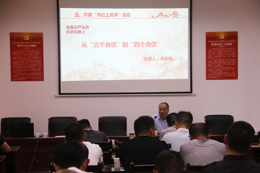 在最后開展的“書記上黨課”活動中,公司黨支部書記作了“從三個自信”到“四個自信”主題教育。告誡公司廣大黨員同志要倍加珍惜、長期堅持和不斷發(fā)展黨歷經(jīng)艱辛開創(chuàng)的道路,高舉中國特色社會主義偉大旗幟,堅定道路自信、理論自信、制度自信、文化自信,貫徹黨的基本理論、路線、方針,為實現(xiàn)中華民族偉大復(fù)興的中國夢而奮斗。