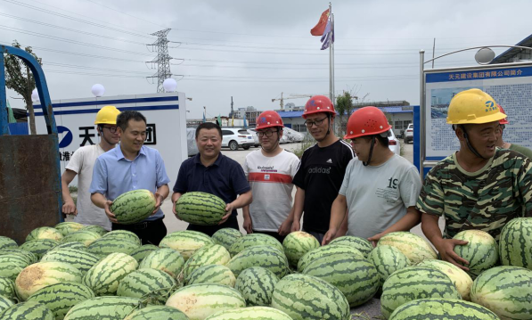 時(shí)值炎炎夏日、酷暑三伏,臨投公司各在建項(xiàng)目施工一線人員依然堅(jiān)守在工作崗位上,為煤化工基地的發(fā)展揮灑著汗水。為了給施工一線人員送去絲絲清涼和關(guān)懷,臨投公司于7月18日前往火神廟村貧困戶戴鳳英家購(gòu)買了愛(ài)心西瓜2200斤,并赴各在建項(xiàng)目現(xiàn)場(chǎng),將愛(ài)心西瓜送到了施工一線人員手中,向他們?cè)诟邷乜崾钪械男量鄤趧?dòng)表示慰問(wèn),并要求各施工單位做好防暑降溫工作,確保施工安全。