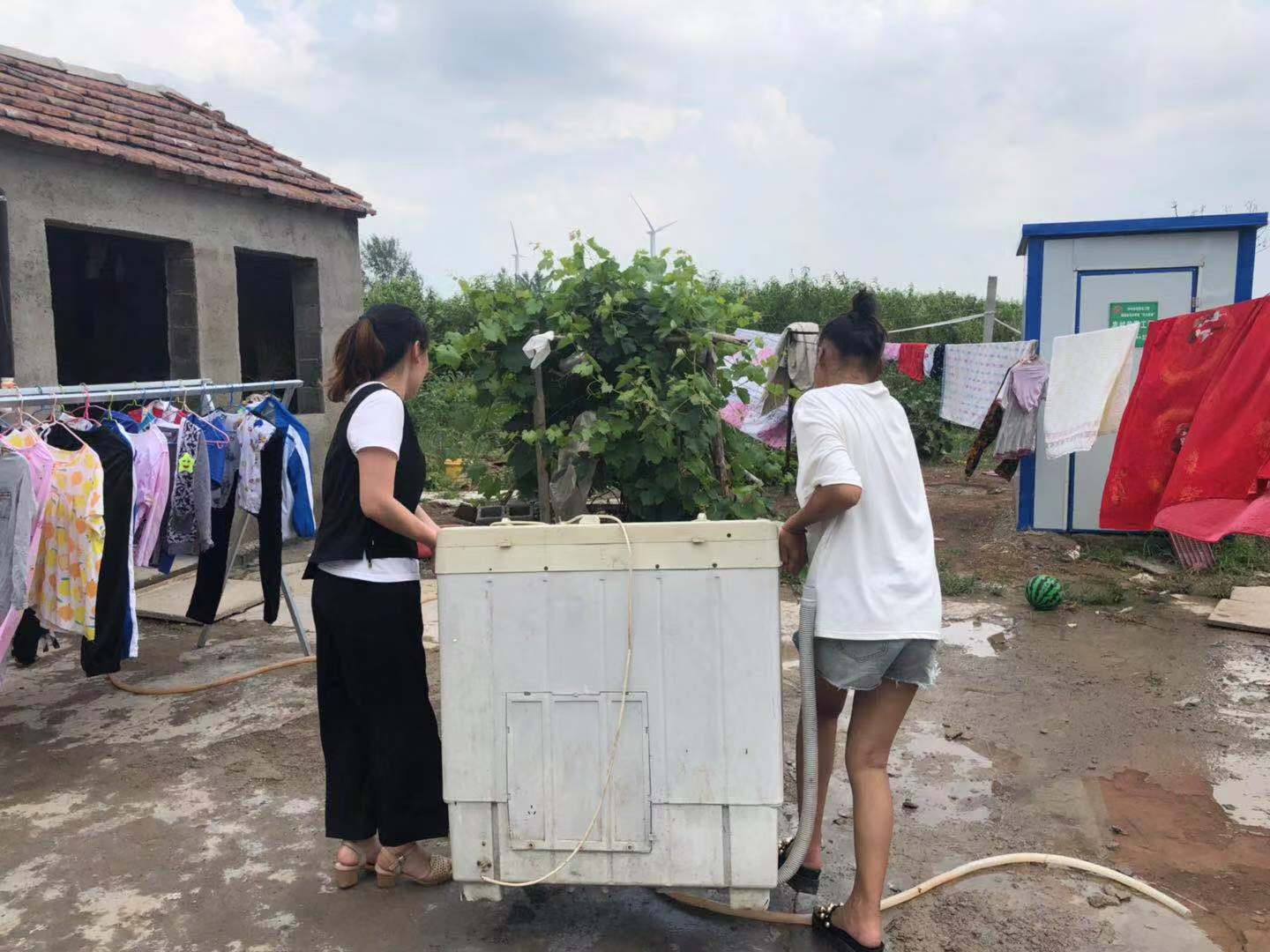 在貧困戶家中,商貿(mào)公司幫扶小組成員幫助他們整理家中物品,宣講國(guó)家扶貧政策并告知貧困戶即將為她送去50只雞苗的好消息,臨行前還叮囑高溫防暑,近期雷雨天氣較多,注意安全。