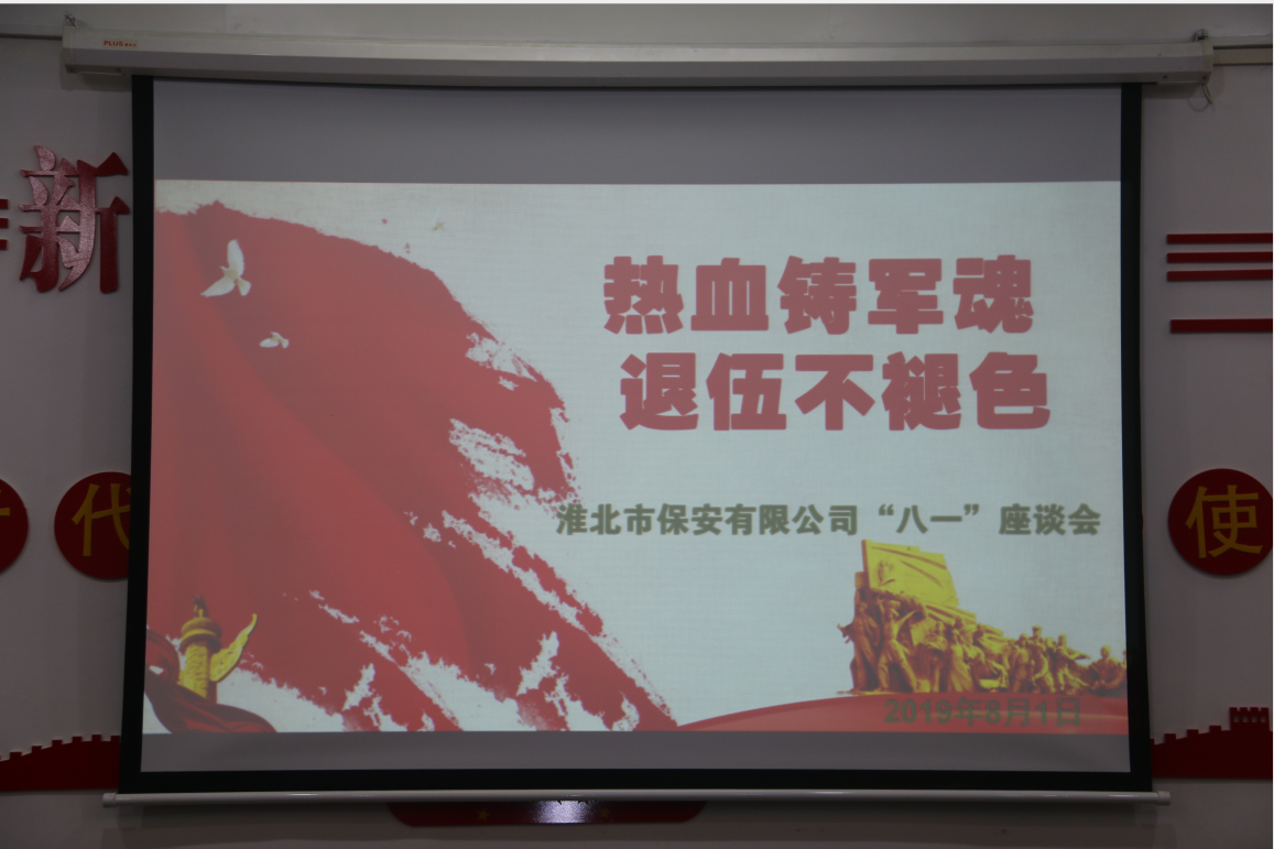 “八一”建軍節(jié)來臨,為慶祝中國人民解放軍建軍92周年,做好退役軍人慰問和組織關(guān)懷工作,淮北市保安有限公司于8月1日上午,召開以“熱血鑄軍魂·退伍不褪色 ”為主題的復(fù)員退伍軍人座談會。邀請公司退役軍人代表參加了座談。
