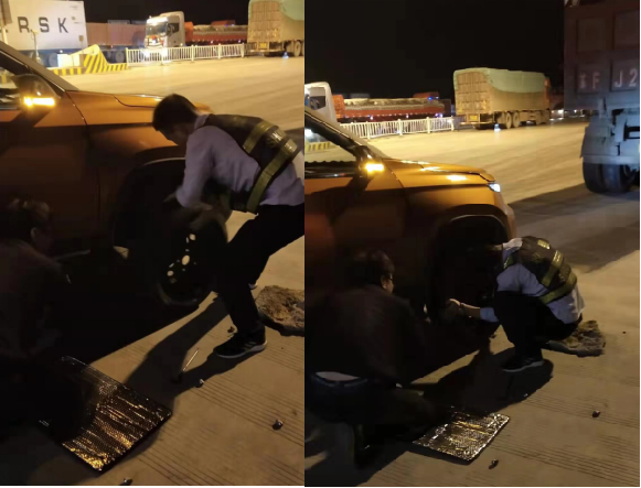 10月23日深夜,一輛外地牌照轎車(chē)在經(jīng)過(guò)S202收費(fèi)站時(shí)突然停在了收費(fèi)廣場(chǎng)不遠(yuǎn)處無(wú)法啟動(dòng),造成我站收費(fèi)通道擁堵,當(dāng)班收費(fèi)三班班長(zhǎng)湯雪峰發(fā)現(xiàn)后立即上前查看情況,從司機(jī)那里得知是被路邊晾曬農(nóng)作物的農(nóng)具扎破了輪胎,因擔(dān)心繼續(xù)強(qiáng)行行駛造成安全隱患,當(dāng)班班長(zhǎng)湯雪峰立即組織組員幫助司機(jī)推行車(chē)輛至站廣場(chǎng),同時(shí),有修車(chē)經(jīng)驗(yàn)的收費(fèi)員拿來(lái)站內(nèi)便民修車(chē)工具幫助司機(jī)更換輪胎,大約經(jīng)過(guò)一小時(shí)的搶修幫助司機(jī)重新?lián)Q好了輪胎,在司機(jī)的感謝聲中,收費(fèi)員們又從新踏上了工作崗位。