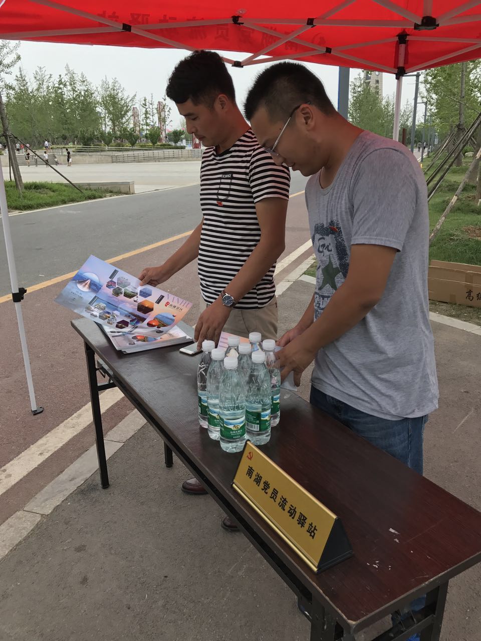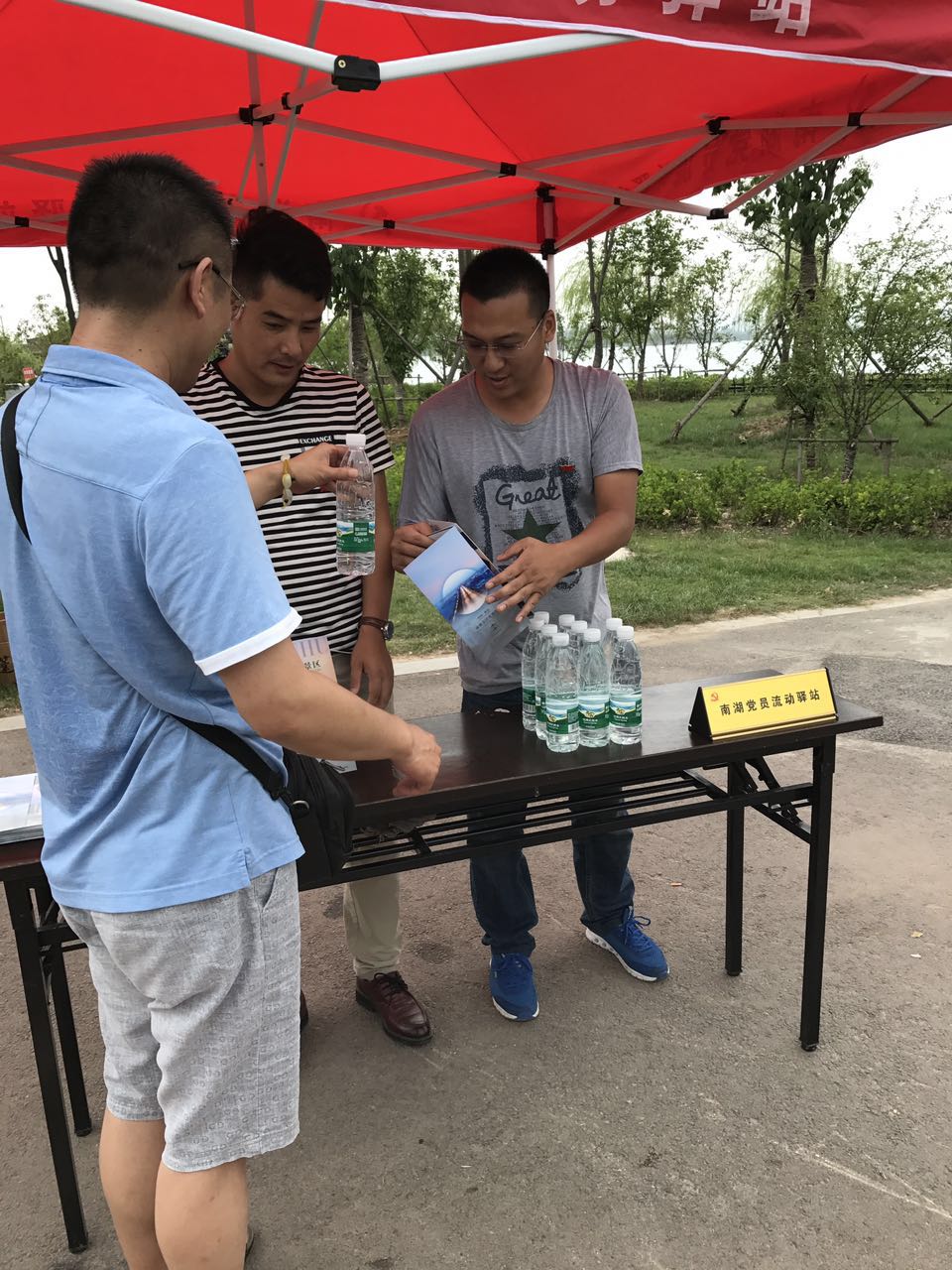 為了慶祝中國共產(chǎn)黨誕辰96周年,7月1日,南投黨支部通過“南湖黨員流動驛站”組織黨員深入景區(qū),服務(wù)游客。在炎炎夏日為游客免費提供純凈水,并贈送南湖宣傳冊一份。一直以來,南投黨支部結(jié)合景區(qū)實際情況,把“黨旗更鮮艷、游客更滿意”作為根本追求,幫游客解決遇到的實際困難和問題,以優(yōu)質(zhì)高效的服務(wù),促進(jìn)景區(qū)經(jīng)濟發(fā)展。讓游客在欣賞美麗風(fēng)景的同時,親身體驗?zāi)虾狞h建工作和黨員服務(wù),享受不一樣的品牌管理與服務(wù),努力把南湖景區(qū)建設(shè)成為一個新型的現(xiàn)代旅游勝地。