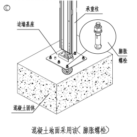 | (1) | 安裝地點(diǎn)為水泥或?yàn)r青地面使用膨脹螺絲;(水泥厚度20-25厘米) | |
